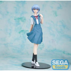 Figurine de Ayanami Rei dans la gamme Uniform Ver. La jeune femme porte une jolie petite robe bleue sur une chemise blanc. Un effet de mouvement est donné au bas de la jupe pour dynamisée un peu la sculpture. Simple mais efficace pour ce personnage du manga Evangelion.
