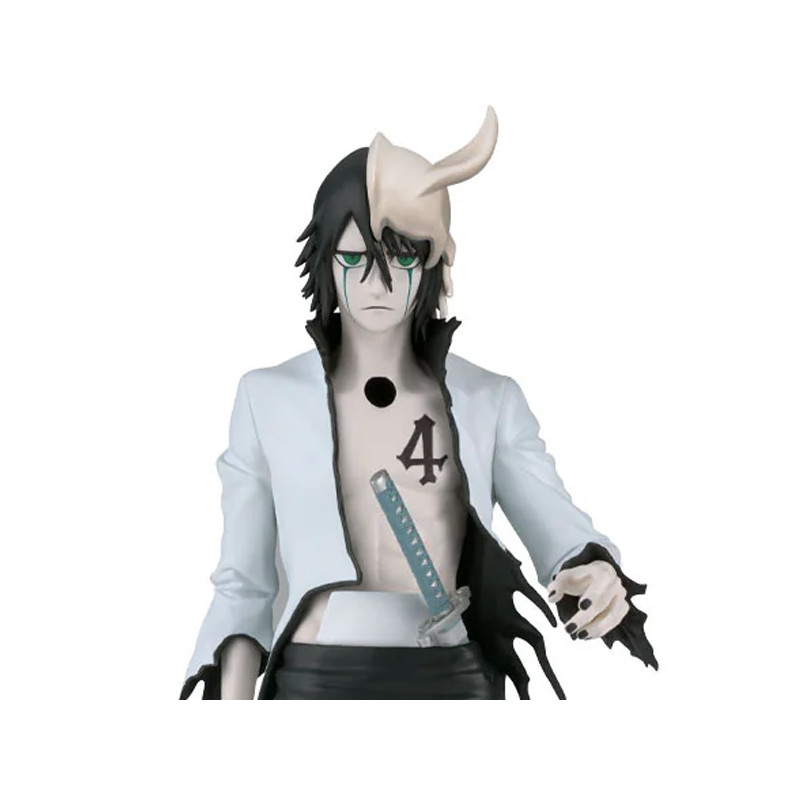 Dans l’univers sombre et intense de Bleach, Ulquiorra Cifer incarne la froideur et l’impassibilité absolues. Quatrième Espada au service d’Aizen Sôsuke, il représente une menace constante pour les Shinigamis et un ennemi redoutable pour Kurosaki Ichigo. Immuable, presque inhumain dans son attitude, il observe et juge avec un calme troublant, ce qui accentue encore son aura inquiétante. Son regard vert perçant, ses paroles glaciales et sa manière de réduire ses adversaires à néant en font l’un des personnages les plus marquants du récit. Cette figurine Banpresto de la collection met en lumière toute la puissance contenue dans ce guerrier d’exception, fidèle à l’intensité de son rôle dans l’histoire.
