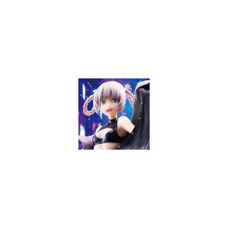 La gamme Glitter & Glamours célèbre ici la beauté sauvage de Nazuna Nanakusa à travers une pièce de collection au design dynamique et charismatique. D’un geste assuré, la vampire soulève son manteau sombre, laissant deviner une silhouette athlétique et une confiance naturelle qui captivent instantanément le regard. Les reflets satinés du cuir noir contrastent avec la douceur de sa peau et la malice de son sourire, comme un écho à la lumière des néons qui illuminent ses nuits. Son regard perçant et ses tresses violettes traduisent toute sa vivacité et cette insouciance propre à ceux qui vivent à contre-courant. L’ensemble respire la liberté, le mouvement et cette énergie vibrante que dégage Nazuna lorsqu’elle sillonne la ville à la recherche de nouvelles sensations.