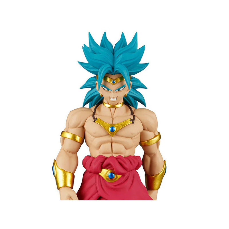 Le guerrier légendaire est représenté dans une posture qui illustre sa domination naturelle : torse bombé, regard perçant et allure de conquérant. Son physique sculpté dans les moindres détails, son armure d’or et ses parures serties de gemmes contrastent avec sa crinière turquoise flamboyante, typique de ses transformations. Les plis de son pantalon, la dynamique du pagne rouge et la finesse des traits du visage renforcent l’impression de réalisme. Chaque élément a été pensé pour refléter la puissance brute et le charisme unique de Broly. Avec environ 25 cm de hauteur, cette pièce de collection trouve naturellement sa place dans toute vitrine consacrée à Dragon Ball Z.
