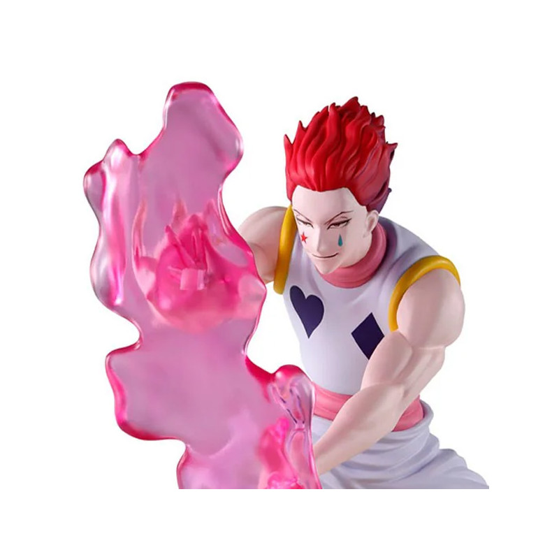 Cette pièce de collection met en lumière Hisoka Morow dans une posture d’attaque dynamique, prêt à libérer son légendaire Bungee Gum — ce pouvoir de Nen à la fois souple et collant, aussi imprévisible que son utilisateur. Son énergie se matérialise ici par un effet translucide rose, parfaitement travaillé pour évoquer le mouvement et la fluidité de sa technique. Sa tenue iconique, reconnaissable entre mille avec ses symboles de cartes à jouer, contraste avec la tension de ses muscles et la précision de son geste. Ses cheveux flamboyants et son expression à la fois concentrée et malicieuse traduisent toute l’intensité de cette scène mythique du Greed Island Arc. Banpresto démontre une nouvelle fois son savoir-faire, équilibrant avec justesse la fidélité au manga et la puissance visuelle.