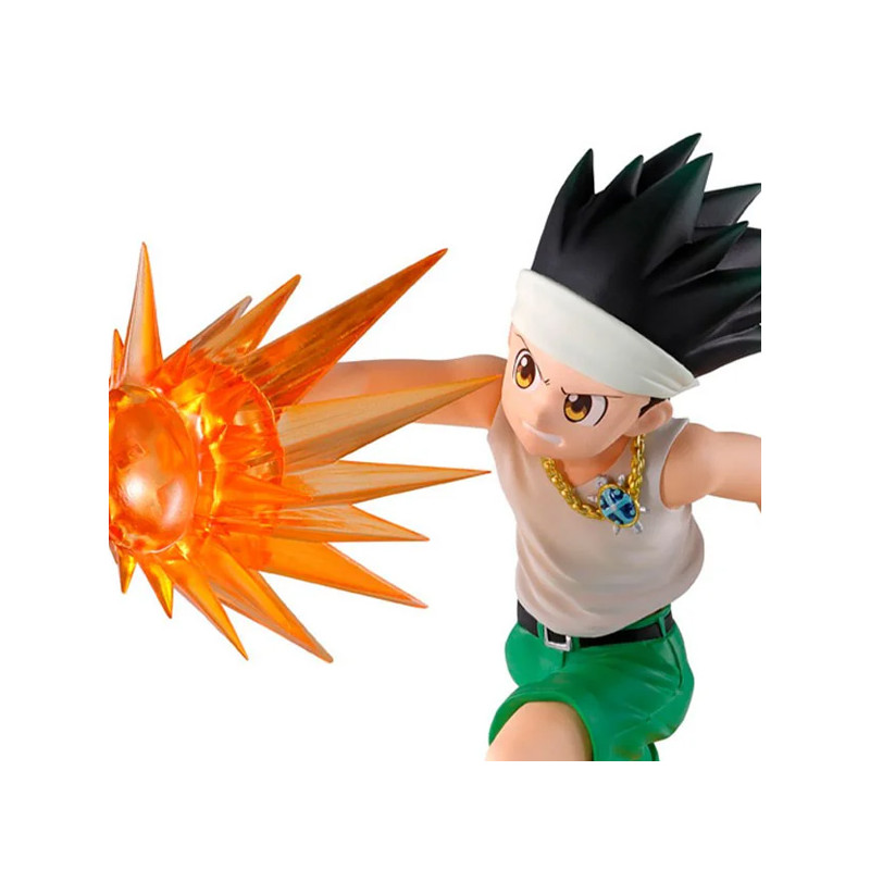 Sous la direction experte de Banpresto, cette pièce de collection donne vie à Gon Freecss en plein mouvement, prêt à libérer toute sa puissance. On le retrouve concentré, muscles tendus, frappant de toutes ses forces lors de la fameuse partie de balle explosive. Le soin apporté aux détails est impressionnant : le regard déterminé, la posture ancrée dans l’action, et surtout l’effet translucide du projectile d’énergie orange qui semble jaillir de son poing. Sa tenue emblématique – short vert, bottes robustes et bandeau blanc – renforce son allure d’aventurier intrépide. Chaque ligne du personnage respire la vitalité et la passion, rappelant ce moment clé où sa persévérance et sa maîtrise du Nen atteignent un nouveau sommet.
