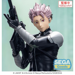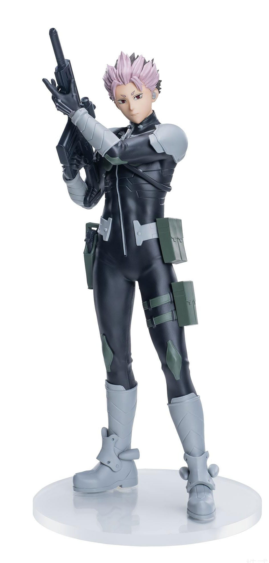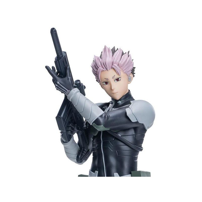 Réalisée par Sega pour la gamme XStellar, cette pièce de collection met en avant tout le charisme et la prestance du capitaine Gen Narumi. On le découvre dans sa tenue de combat intégrale, un uniforme noir et argent parfaitement ajusté, renforcé de protections métalliques et d’étuis tactiques. Son arme est tenue avec une précision chirurgicale, rappelant la posture d’un soldat prêt à frapper sans hésitation. Le travail sur les textures est remarquable : la combinaison moulante contraste avec la finition mate de l’équipement, tandis que ses cheveux rose cendré, finement sculptés, traduisent toute sa détermination. Le regard acéré, dirigé vers l’horizon, exprime une vigilance constante, une tension contenue avant l’action. Cette réalisation allie technicité et intensité, à l’image du héros qu’elle représente.