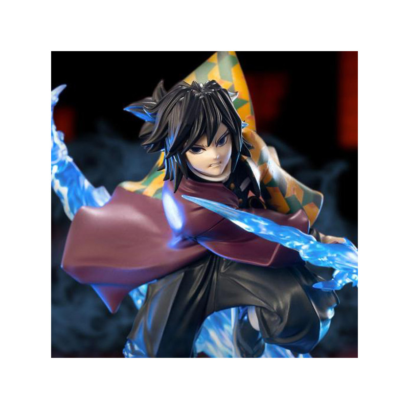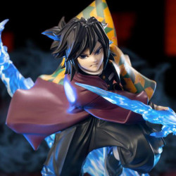 Issue de la gamme Xross Link et façonnée par le savoir-faire de SEGA, cette représentation de Tomioka Giyuu fige l’instant précis où son souffle de l’Eau s’élance dans un tourbillon d’éclats bleus. Son regard déterminé, son port droit et son mouvement fluide évoquent la maîtrise absolue de sa technique. Le contraste entre la douceur aquatique du socle translucide et la rigueur de son kimono bicolore, rouge et vert à motifs hexagonaux, traduit parfaitement l’équilibre de ce personnage entre discipline et émotion. Les reflets glacés de sa lame, associés à la posture en pleine action, renforcent l’effet de puissance tranquille qu’il dégage. Une création d’une finesse remarquable où chaque pli, chaque reflet, donne vie à un instant suspendu au milieu du combat.