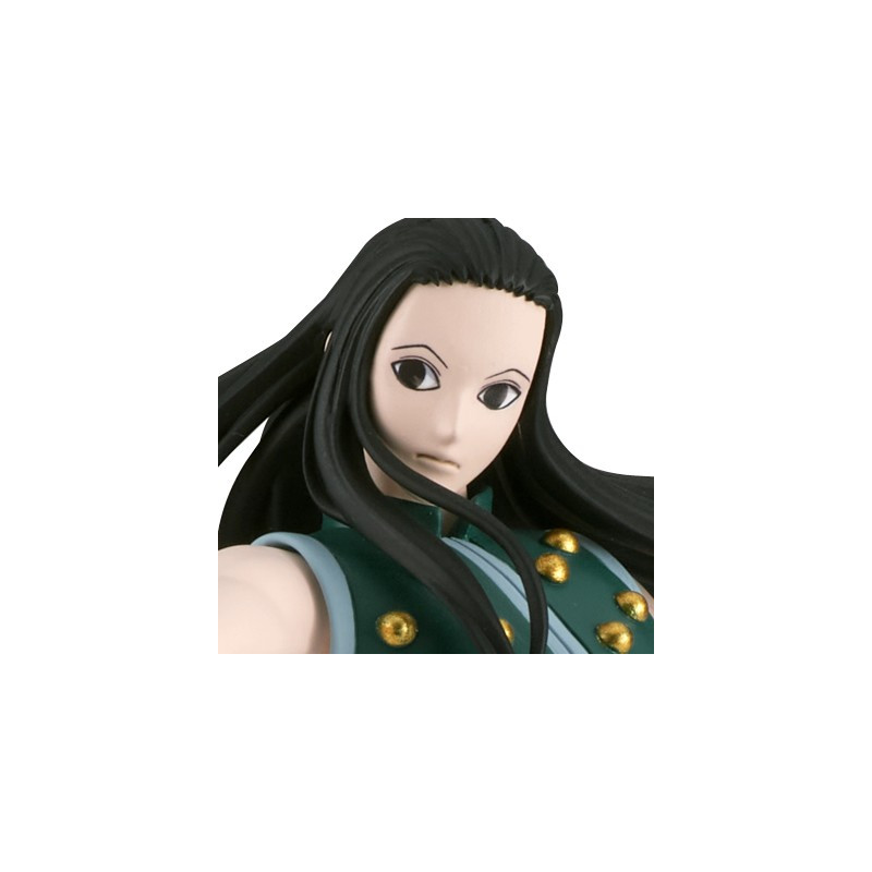 Pour cette Vibration Star, Banpresto met en avant les techniques d'Irumi Zoldik qui utilise ses aiguilles. Son visage est froid et sans expressions notable. Les détails sculpturaux soigneusement travaillés reflètent son apparence énigmatique, avec une pose dynamique qui souligne sa nature calculatrice. Cette figurine peut être associée à celle de son "ami" Hisoka Moow : Hunter X Hunter - Figurine Hisoka Morow Vibration Stars