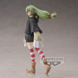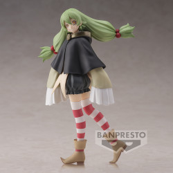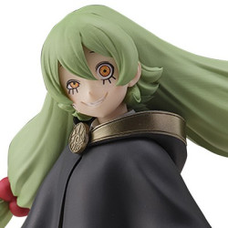 Pour cette figurine de 17 cm, Banpresto est resté très fidèle à son personnage : elle porte ses longs cheveux verts en nattes et des manches très longues sous un châle noir. Ses grands yeux dorés et arrondis capturent aussitôt l'attention et lui donne d'ailleurs des allures de clown ou d'un bouffon. Mais que cache-t-elle vraiment sous son sourire ? Elle donne l'impression de se déplacer tout en fixant son objectif, lui dédiant un sourire qui pourrait bien donner quelques frissons. Les détails sont réalisme et présents pour cette pièce de collection issue de l'univers de Shy.