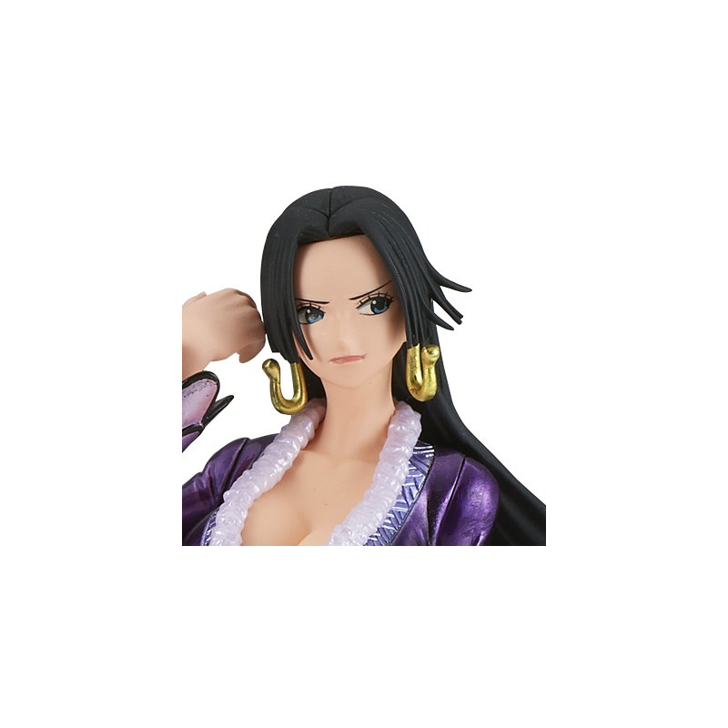 Figurine en PVC de Boa Hancock dans la gamme Grandline Journey Figure Special Color. Sculpture très glamour de l'une des plus belles femmes de l'univers de Eiichiro Oda. La Princesse Serpent adopte une posture sensuelle, pleine d'élégance et de grâce qui colle parfaitement à sa personnalité. Main dans ses longs cheveux qui ont un mouvement pour donner une peu de dynamisme, jambes croisées dévoilant ses courbes, Boa est plus belle que jamais. Une pièce de collection qui saura plaire aux fans de One Piece.