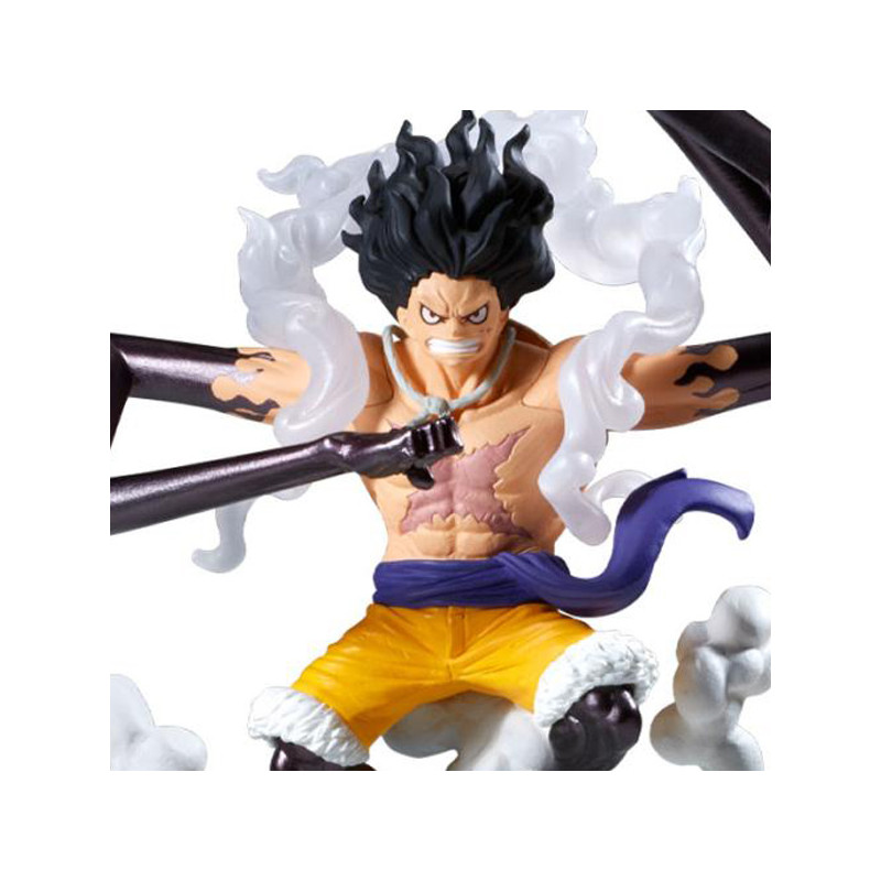 Issue de la célèbre gamme Senkozekkei par Banpresto, cette pièce de collection retranscrit avec une intensité saisissante l’aura explosive de Monkey D. Luffy au cœur du combat. Les effets de fumée blanche s’enroulent autour de lui, accentuant la dynamique de son mouvement tandis que la base sculptée évoque le sol fissuré sous l’impact de sa puissance. Ses bras allongés, durcis par le Haki, et son torse tendu trahissent toute la tension d’un affrontement dantesque. Les contrastes de couleur — entre le noir métallisé de ses poings, le jaune éclatant de son short et le violet de sa ceinture — captent l’œil et évoquent la flamboyance du combat. Chaque détail, du regard déterminé à la cicatrice sur sa poitrine, renforce cette impression de mouvement figé dans le temps, un instant suspendu de pur héroïsme.