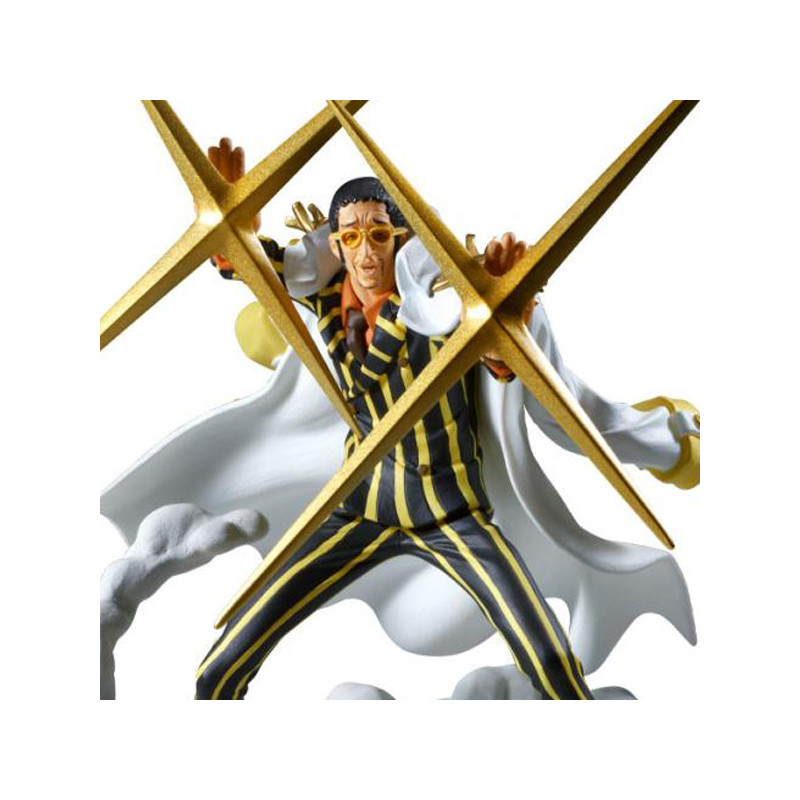 Issue de la gamme Senkozekkei par Banpresto, cette pièce de collection sublime toute la majesté et la puissance de Kizaru. Son uniforme rayé noir et jaune, rehaussé de son long manteau blanc de la Marine, brille sous les reflets dorés de ses attaques lumineuses. Les faisceaux sculptés en croix s’élancent vers l’avant, traduisant la vitesse et l’intensité du combat. Son visage impassible, presque amusé, souligne parfaitement son caractère imprévisible : calme face au chaos, mais prêt à pulvériser tout ce qui se trouve sur sa trajectoire. Les effets de fumée blanche autour de sa base accentuent cette impression d’énergie pure et de maîtrise absolue. Un équilibre parfait entre puissance destructrice et élégance naturelle.
