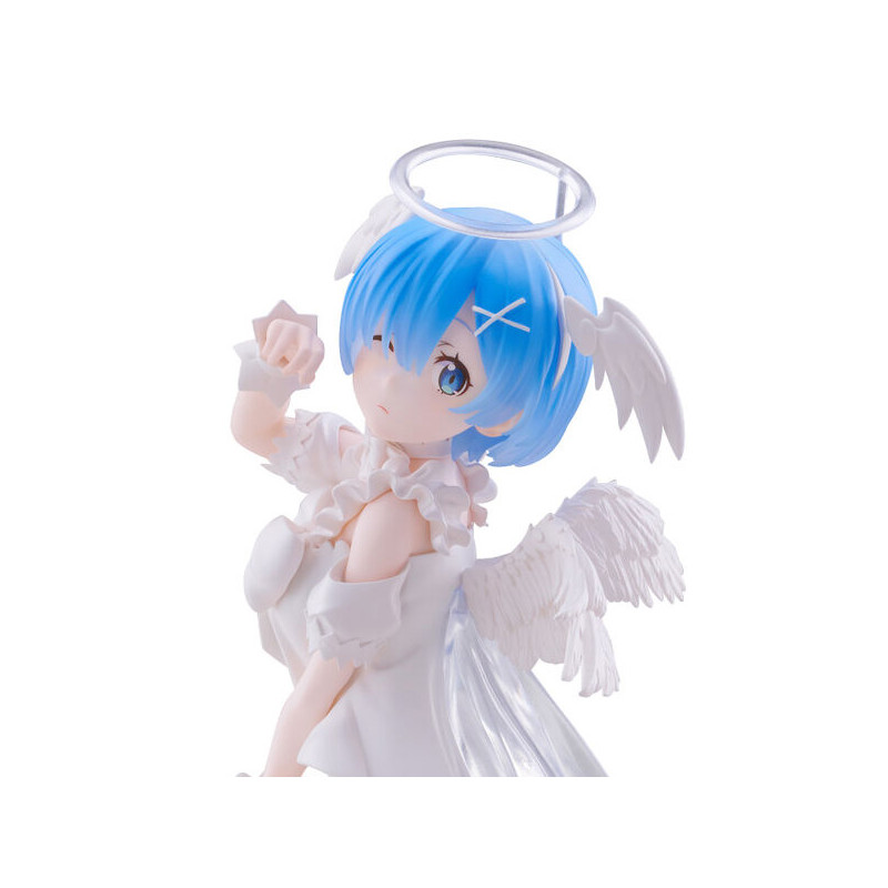 Dans cette version Sweet Angel, Rem apparaît vêtue d’une tenue immaculée aux volants légers, entourée d’ailes finement sculptées et d’une auréole cristalline qui flotte au-dessus de sa chevelure bleue emblématique. Assise avec une élégance naturelle, elle semble tout droit sortie d’un rêve paisible, incarnant la pureté et la sérénité qu’on lui connaît dans Re:Zero. Les finitions délicates de sa robe, les plumes minutieusement détaillées de ses ailes et la transparence subtile de sa cape confèrent à cette pièce de collection un réalisme poétique. Son expression douce et légèrement pensive évoque la bienveillance et la réserve de ce personnage si attachant. Avec cette création, Banpresto parvient à retranscrire la beauté simple et apaisante de la jeune oni comme rarement auparavant.