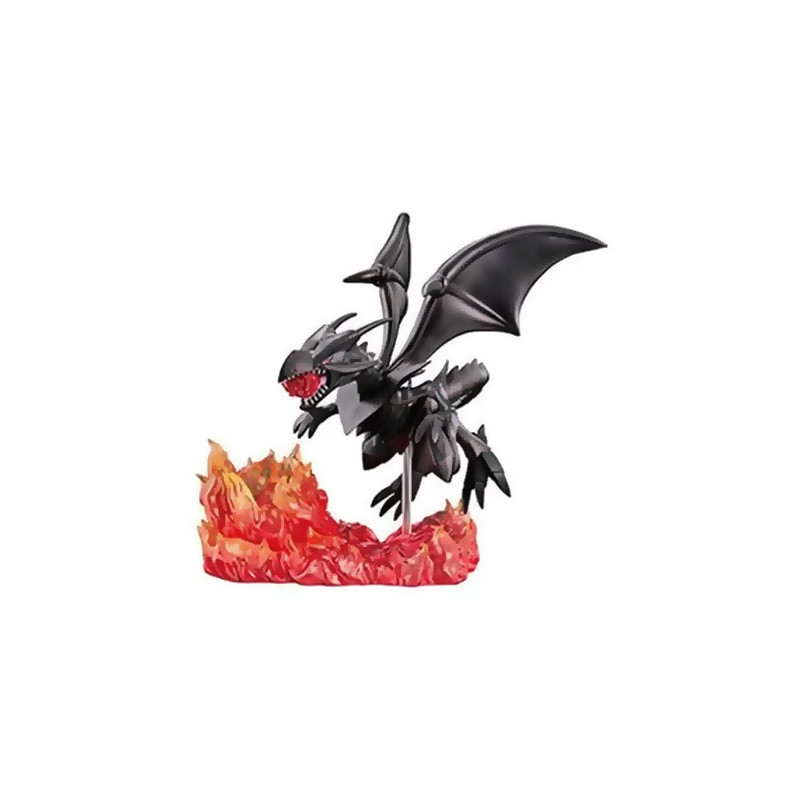 Fidèle compagnon de Joey Wheeler, le Dragon Noir aux Yeux Rouges incarne la fougue et la détermination de son maître. Moins parfait que son homologue, le Dragon Blanc aux Yeux Bleus, il n’en demeure pas moins une créature redoutable, forgée par la volonté et le courage. Sa silhouette élancée, ses ailes noires et son souffle incandescent traduisent la rage maîtrisée d’un être né pour le combat. Dans cette figurine issue de la gamme Duel Monsters Desktop Collection, Re-Ment immortalise le moment où le dragon surgit des flammes, prêt à réduire son adversaire en cendres. Le contraste saisissant entre les teintes sombres de son corps et l’éclat rougeoyant de la base enflammée évoque toute la dramaturgie des duels les plus intenses du manga. Le regard perçant et la posture conquérante du monstre transmettent instantanément son charisme imposant, symbole de bravoure et de loyauté.